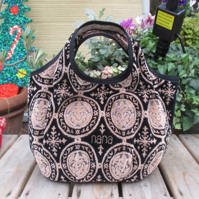 横浜ナナ Kバッグ マリン柄 黒/ベージュ