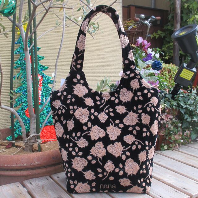 横浜ナナ ストリートバッグ ローズ柄 黒/ベージュ