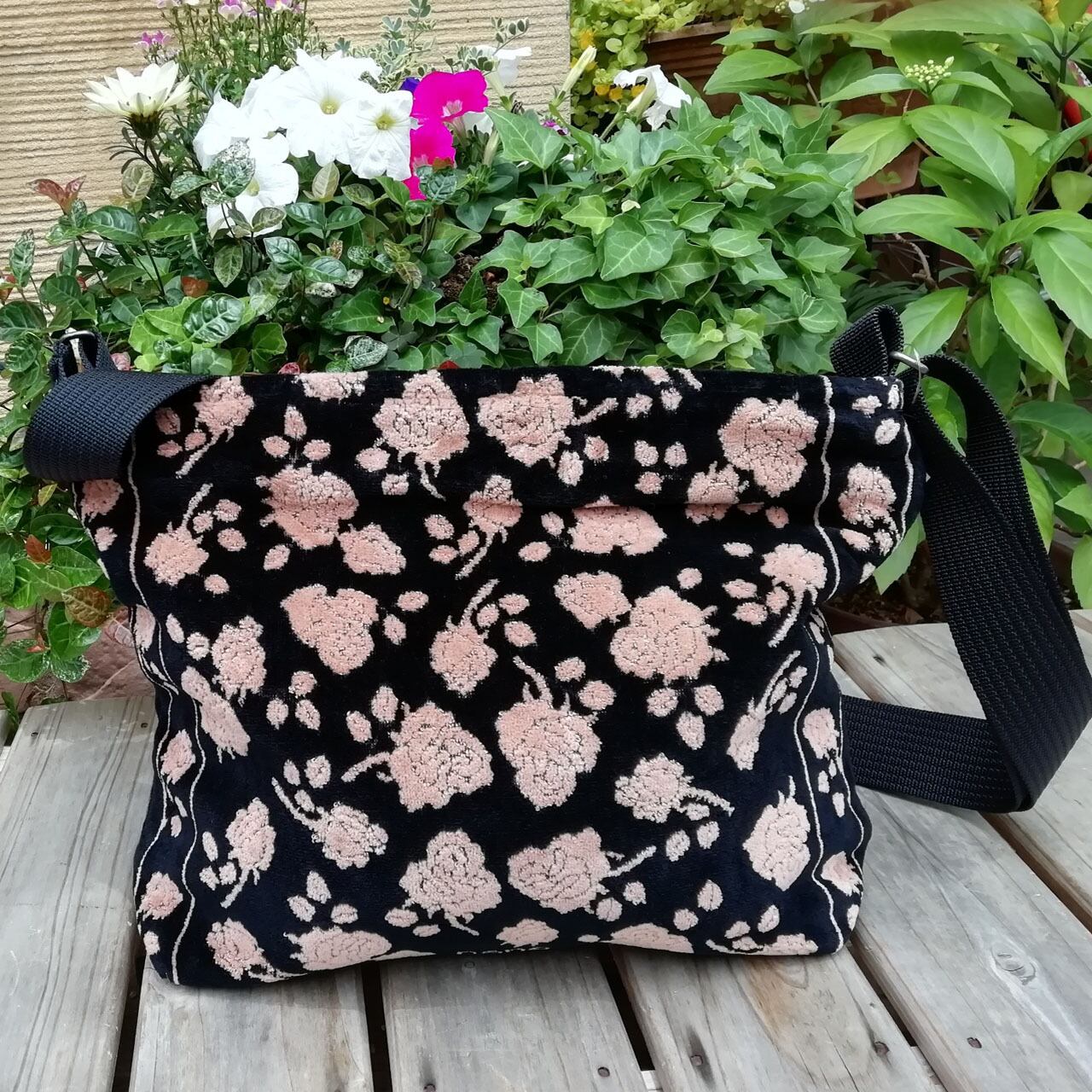 横浜ナナ ボディーバッグB 黒/ベージュ 全体柄のバラ