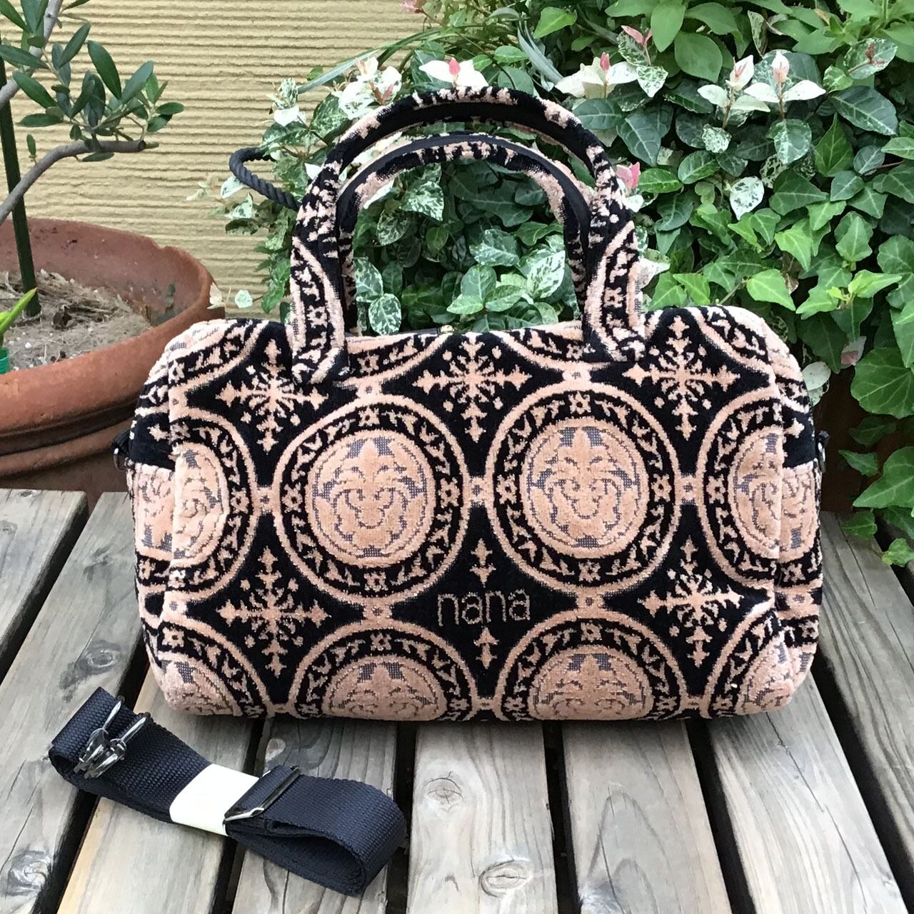 横浜ナナ 2WAYボストン 黒/ベージュ マリン柄