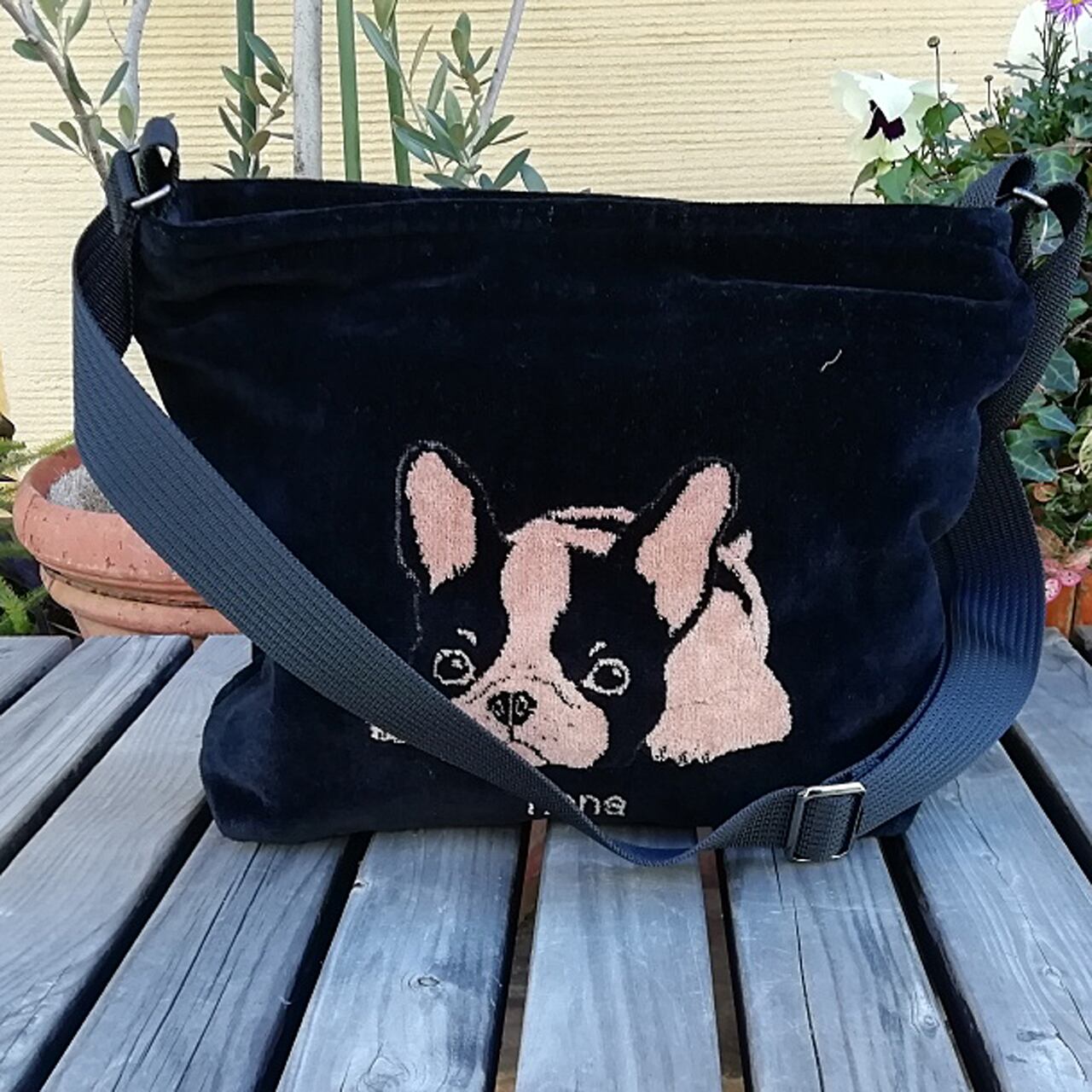 横浜ナナ ボディーバッグB 黒/ベージュ フレンチブル柄