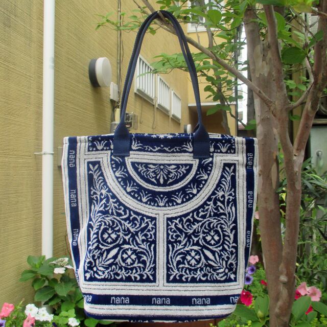 横浜ナナのショルダーバッグ ドーム柄 紺/白