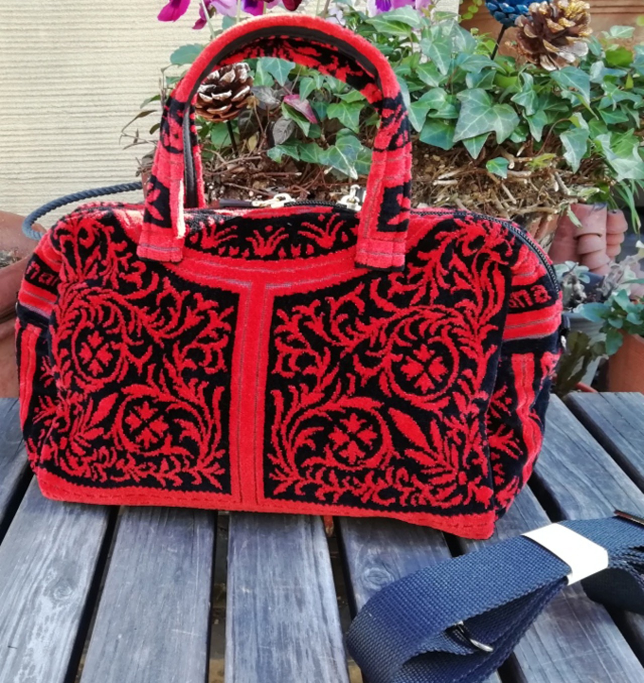 横浜ナナ 2WAYボストン オレンジ/黒 ドーム柄