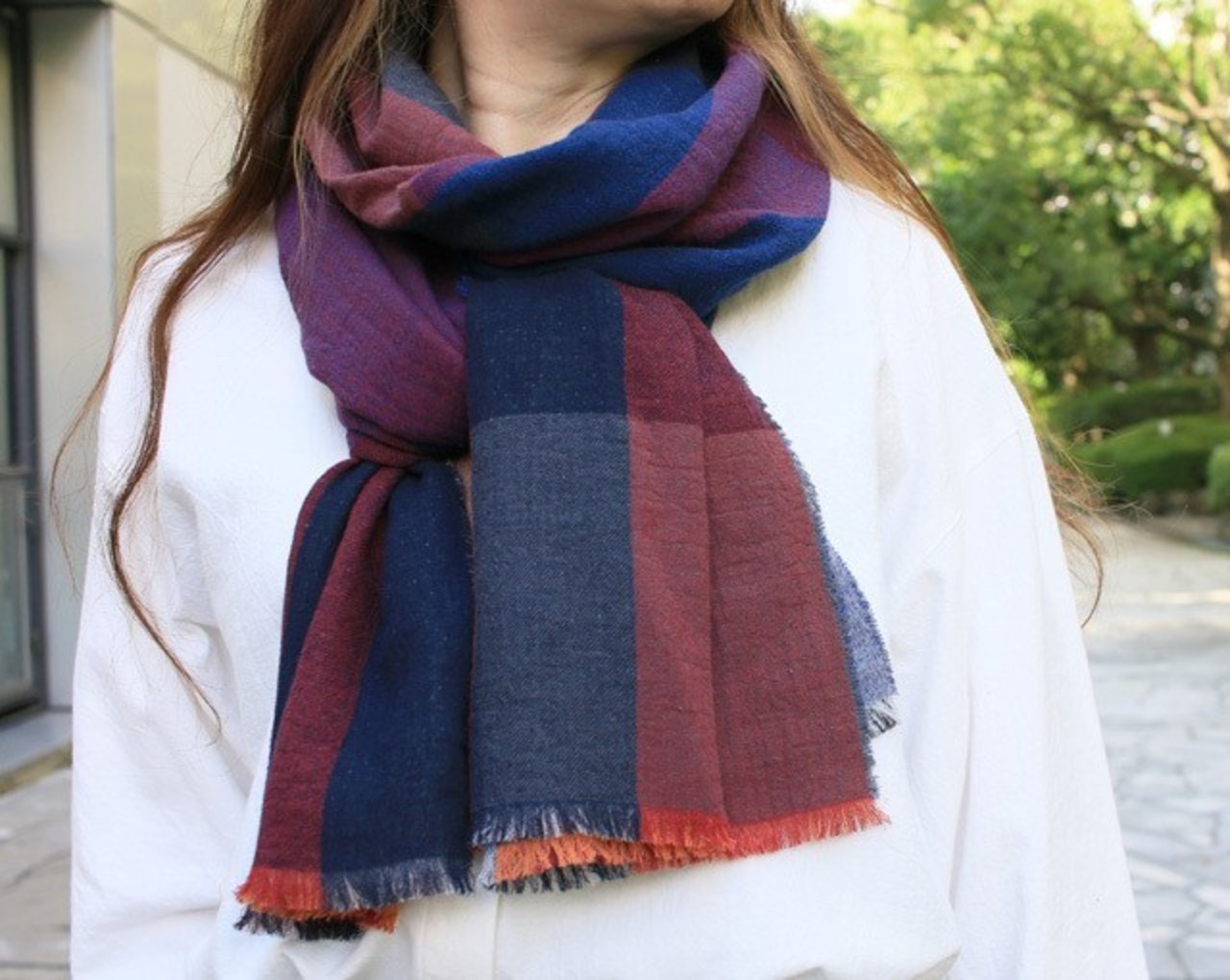 「菜」 ストール 秋冬 綿 WW-1528 パープルレッド