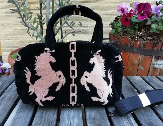 横浜ナナ 2WAYボストン 黒/ベージュ ホース柄