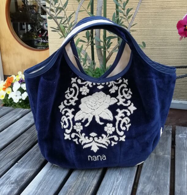 横浜ナナ Kバッグ 紺/アイボリー ワンポイントのバラ