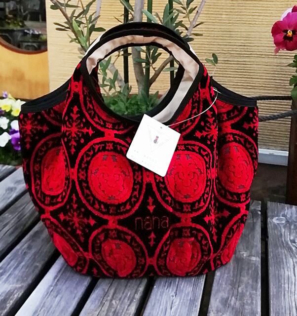 横浜ナナ Kバッグ ブラック&レッド マリン柄