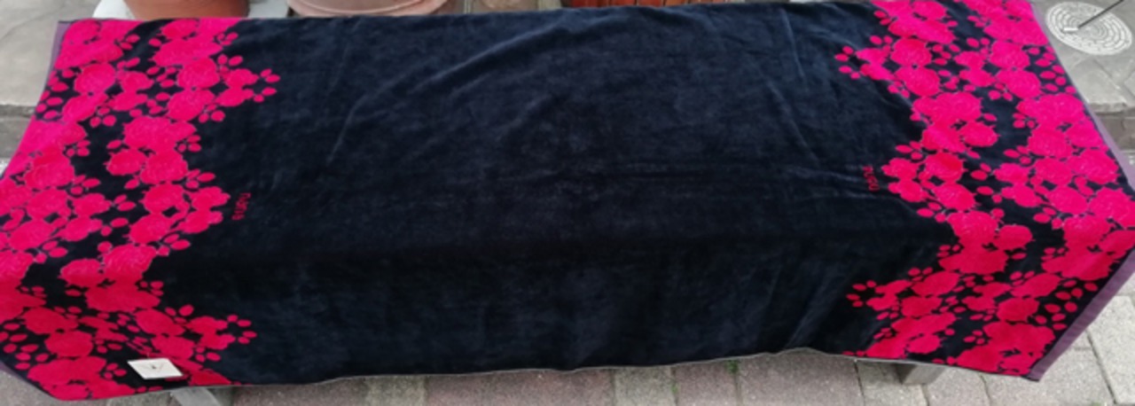 横浜ナナ バスタオル ブラック&レッド ローズ柄