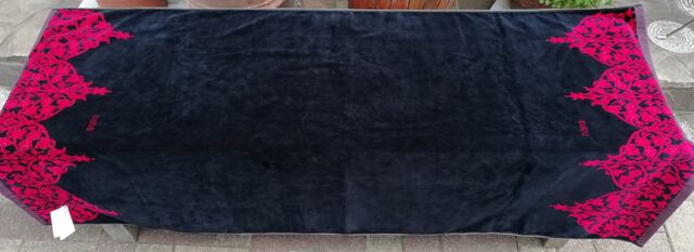 横浜ナナ バスタオル ブラック&レッド インディア柄