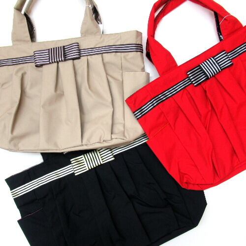 ボーダーのリボンがポイントになった甘すぎなくて大人可愛いバッグは、重さ約170グラムと軽くて持ちやすく、シンプルなので服装を選ばず様々なシーンでお使い頂けます。