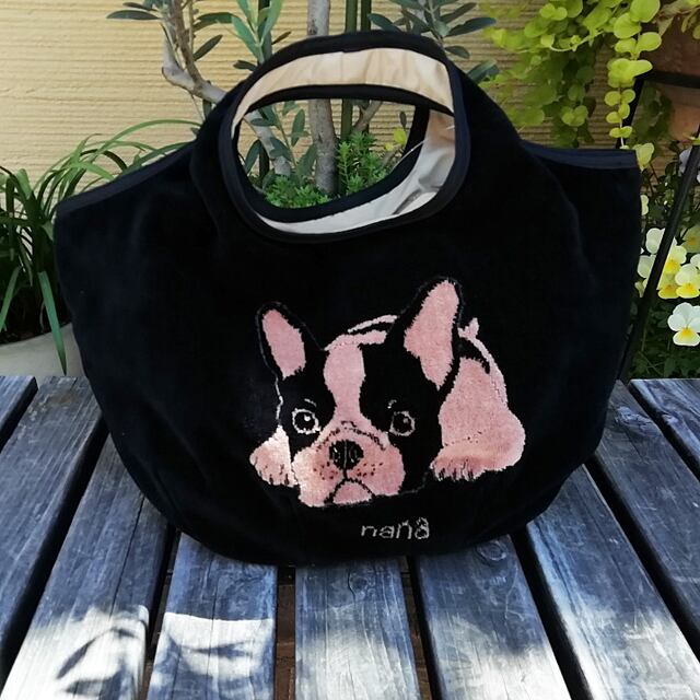 横浜ナナ KバッグDX 黒/ベージュ フレンチブル柄