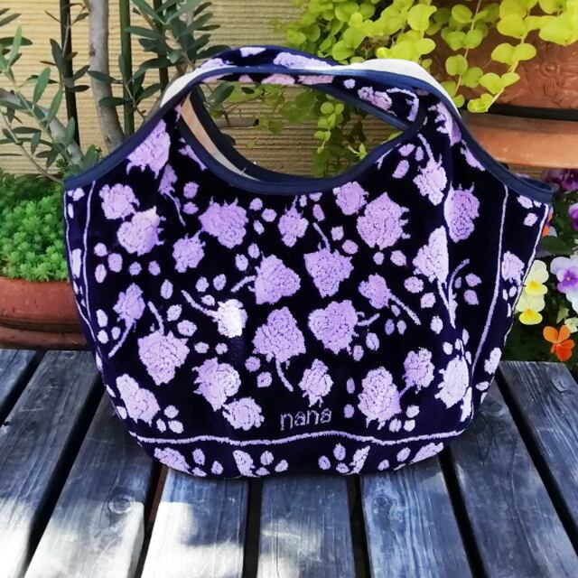 横浜ナナ Kバッグ パープルベース 総柄のバラ