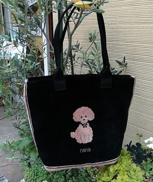 横浜ナナ ショルダー 黒/ベージュ プードル柄