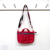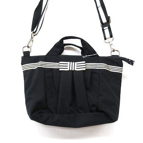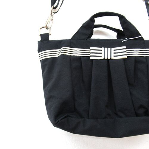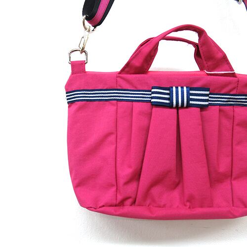 ボーダーのリボンがポイントになった甘すぎなくて大人可愛いポシェットは、お財布と鍵とハンカチなどを入れて、ちょっとそこまでのお買い物やお散歩、旅先での持ち歩きにも便利なサイズです。