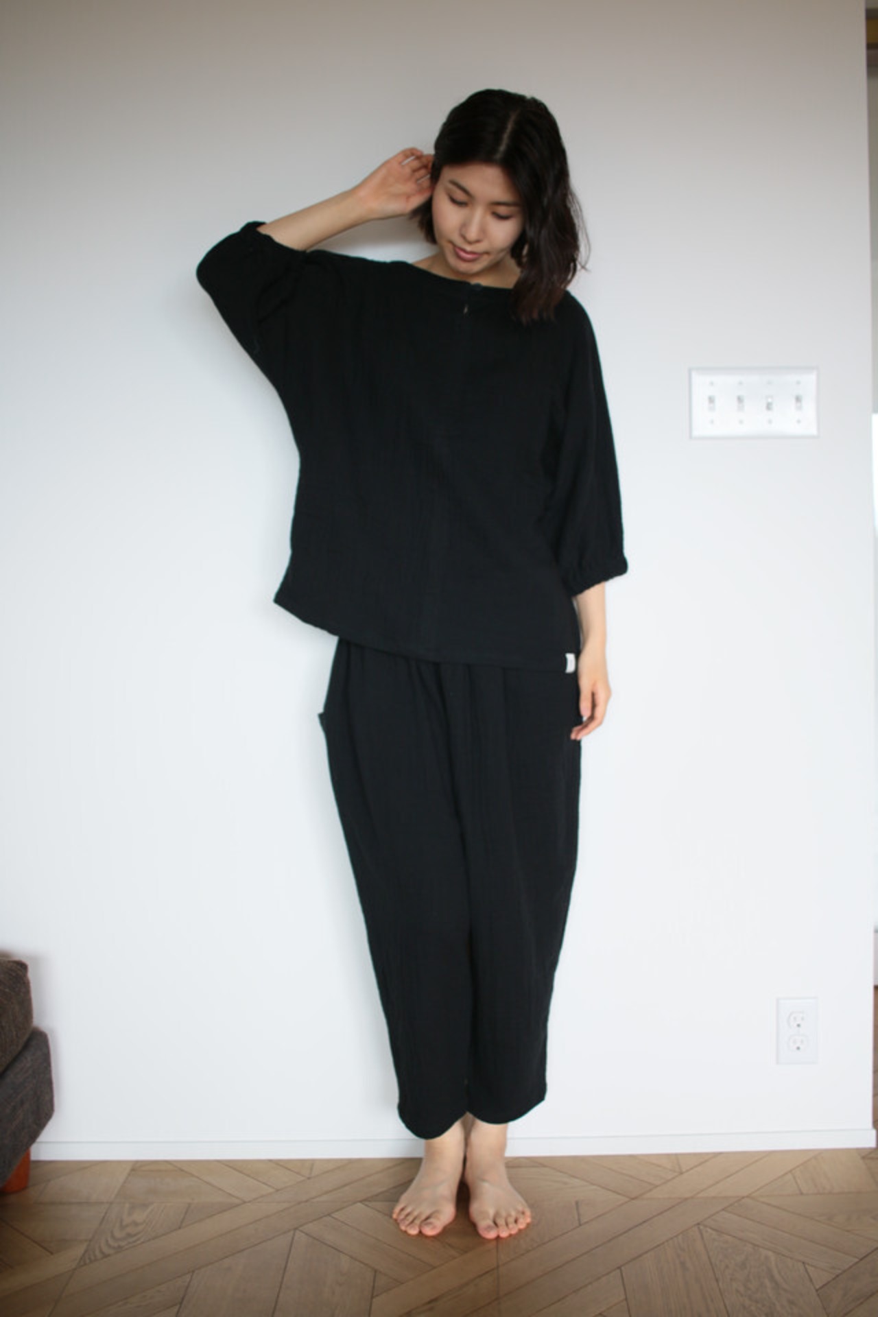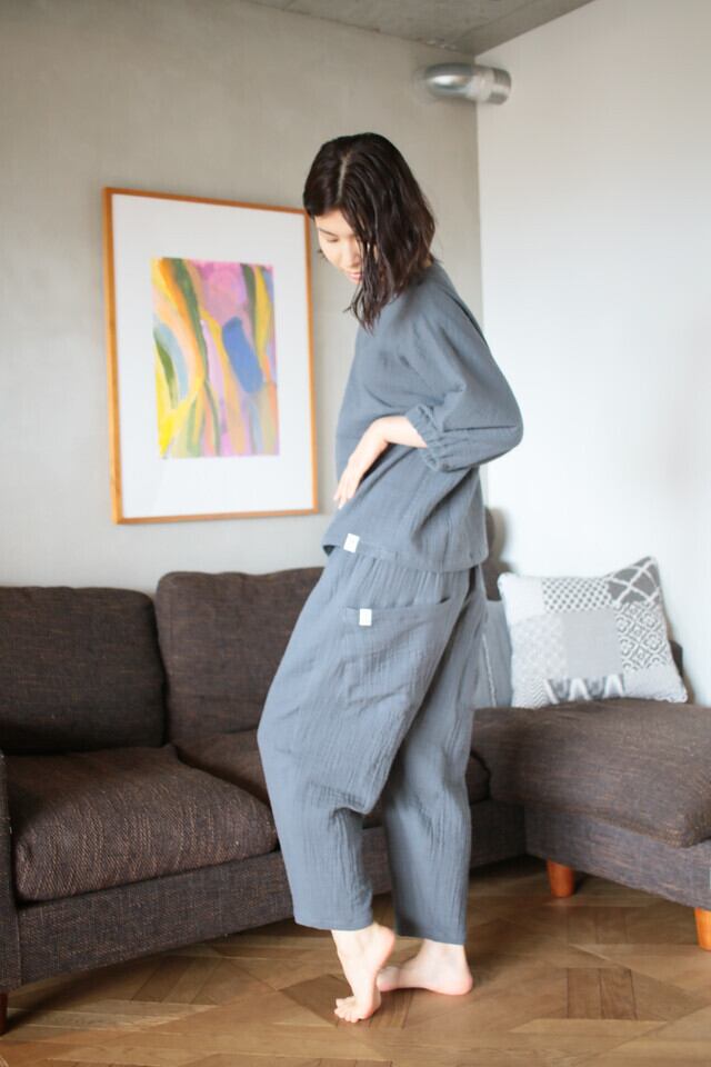 パンツ全体に綿100%3重ガーゼの生地を使用、ウエストゴム。