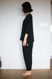 太もも部分をゆったりと裾に向かって細くなるテーパードタイプになります。
