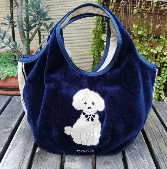 横浜ナナ KバッグDX 紺/アイボリー プードル柄
