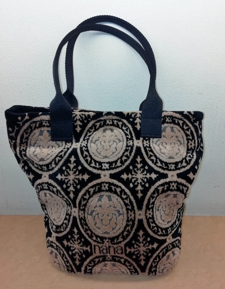 横浜ナナ バッグ小 黒/ベージュ マリン柄