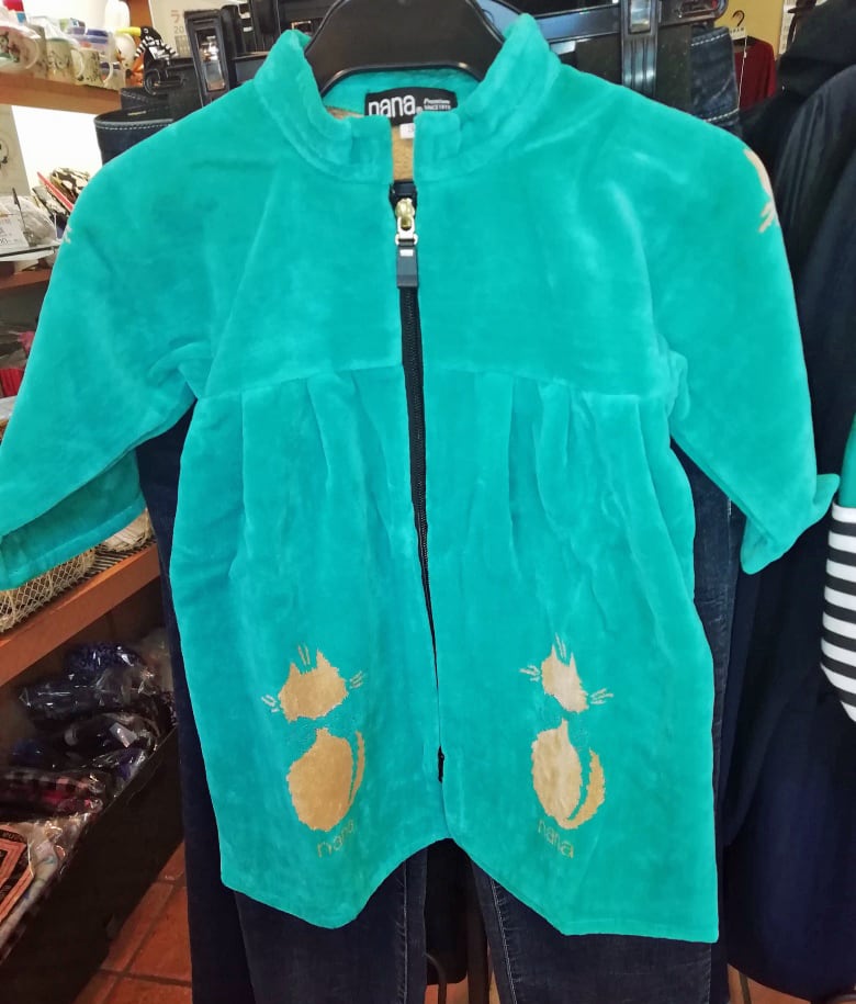 横浜ナナ 子供ガウン ターコイズ/ベージュ ネコ柄