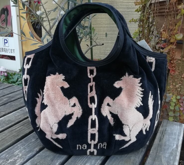 横浜ナナ Kバッグ 黒/ベージュ ホース柄