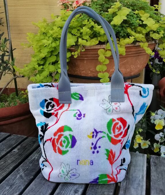タオルの名品「横浜ナナ」、このサイズは普段使いには一番、自転車のかごにもすっぽり入ります。