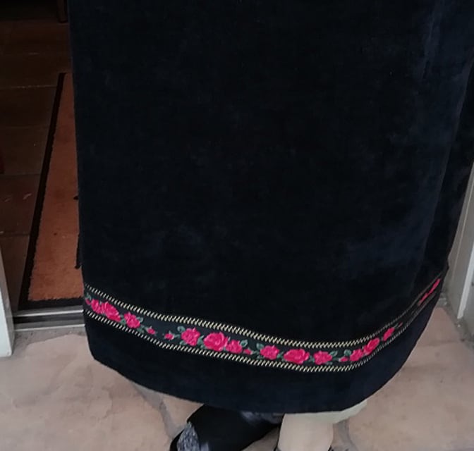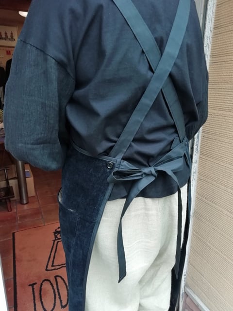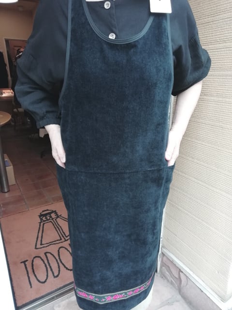 NEW 横浜ナナデラックスエプロン Mサイズ 黒ベース/裾にバラのテープ状刺しゅう