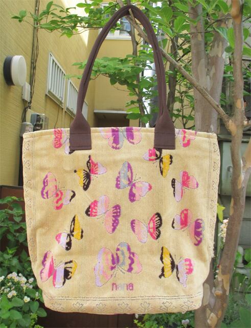 ベージュベースの横浜ナナ ショルダー パピヨン柄