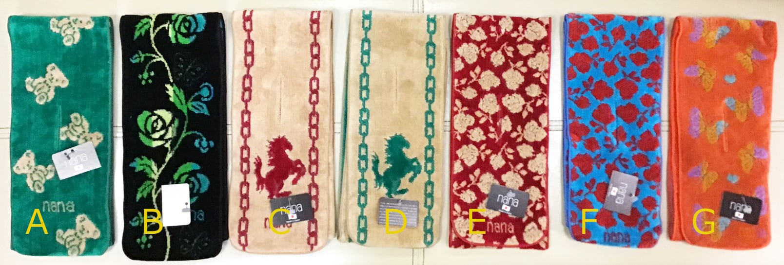 横浜ナナのナローマフラーです。とっても扱いやすく片側の切り込みに挟む仕様になりました。