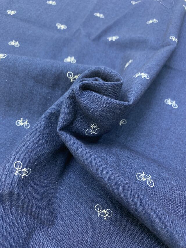 また、ベースとなる藍染の生地に自転車の柄を抜染プリントしています。