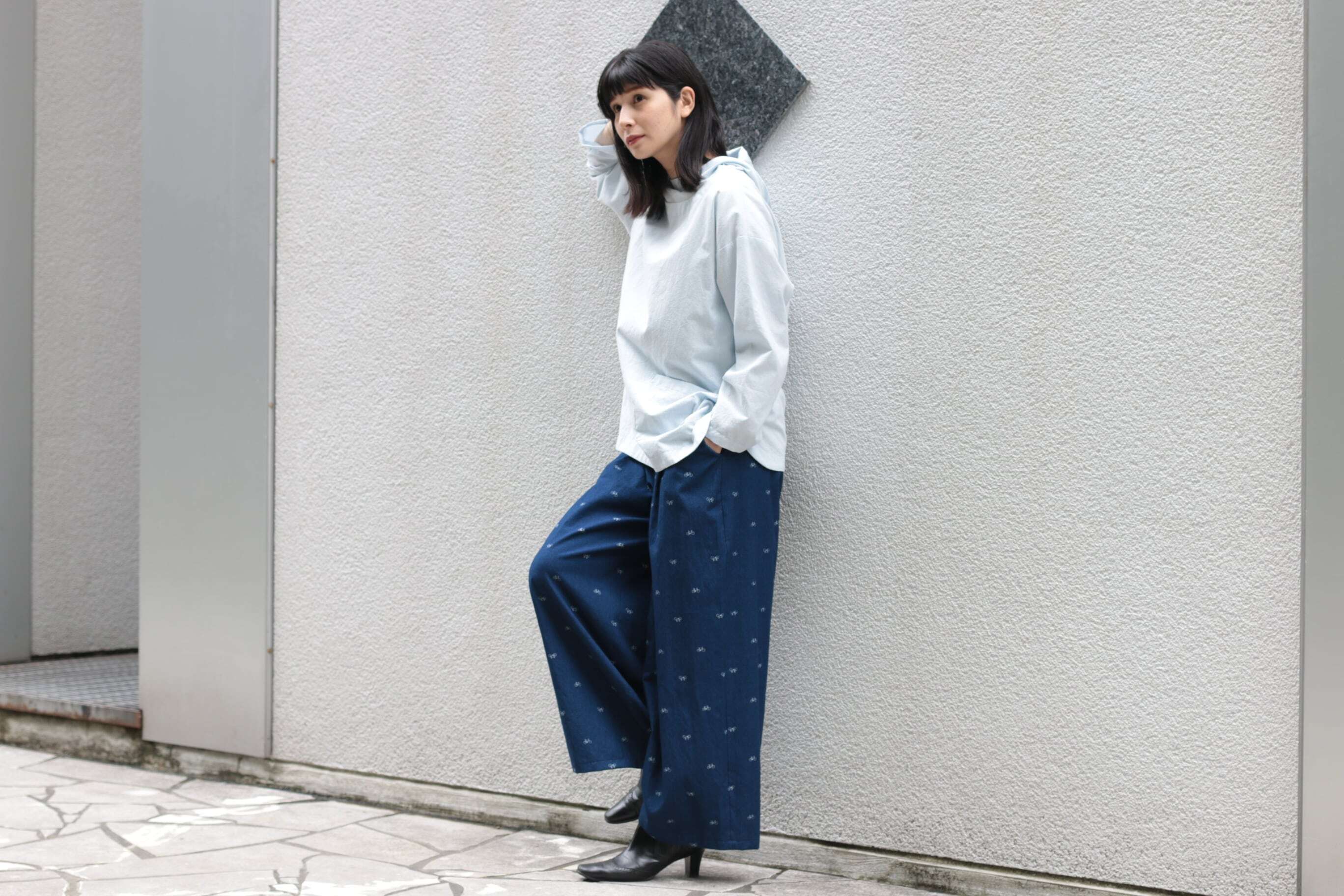 7年ぶりの復活柄です 菜 1743 ワイドパンツ 藍染 自転車柄