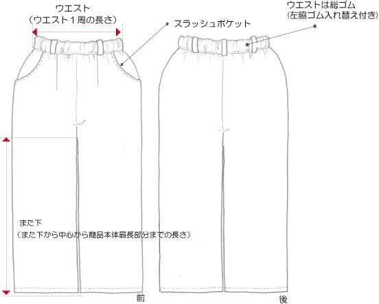 ウエストゴムもお腹に締め付けがなく、ベルトループを付けたことでベルトをしてサイズ調整出来ることもポイントになっています。