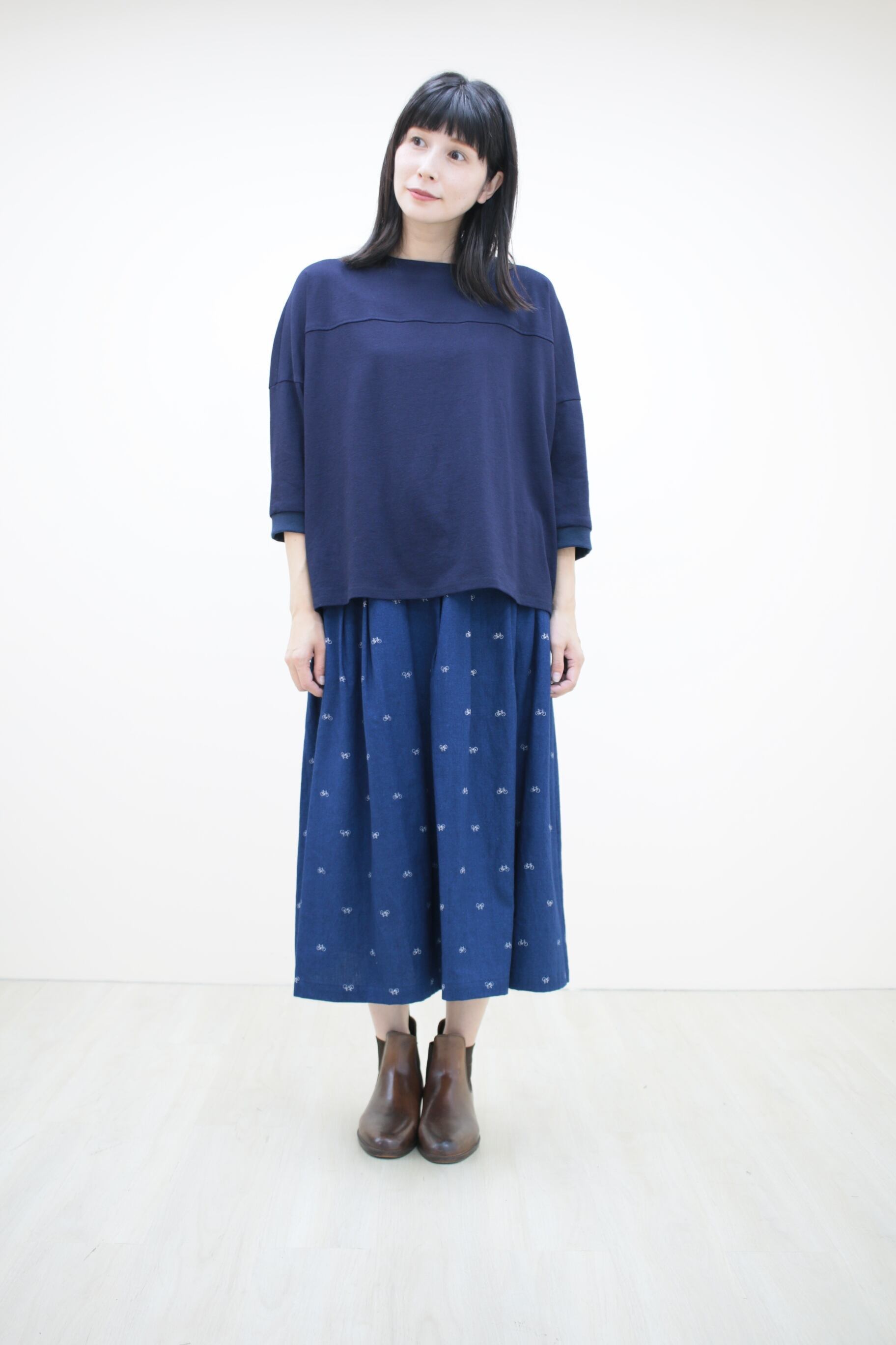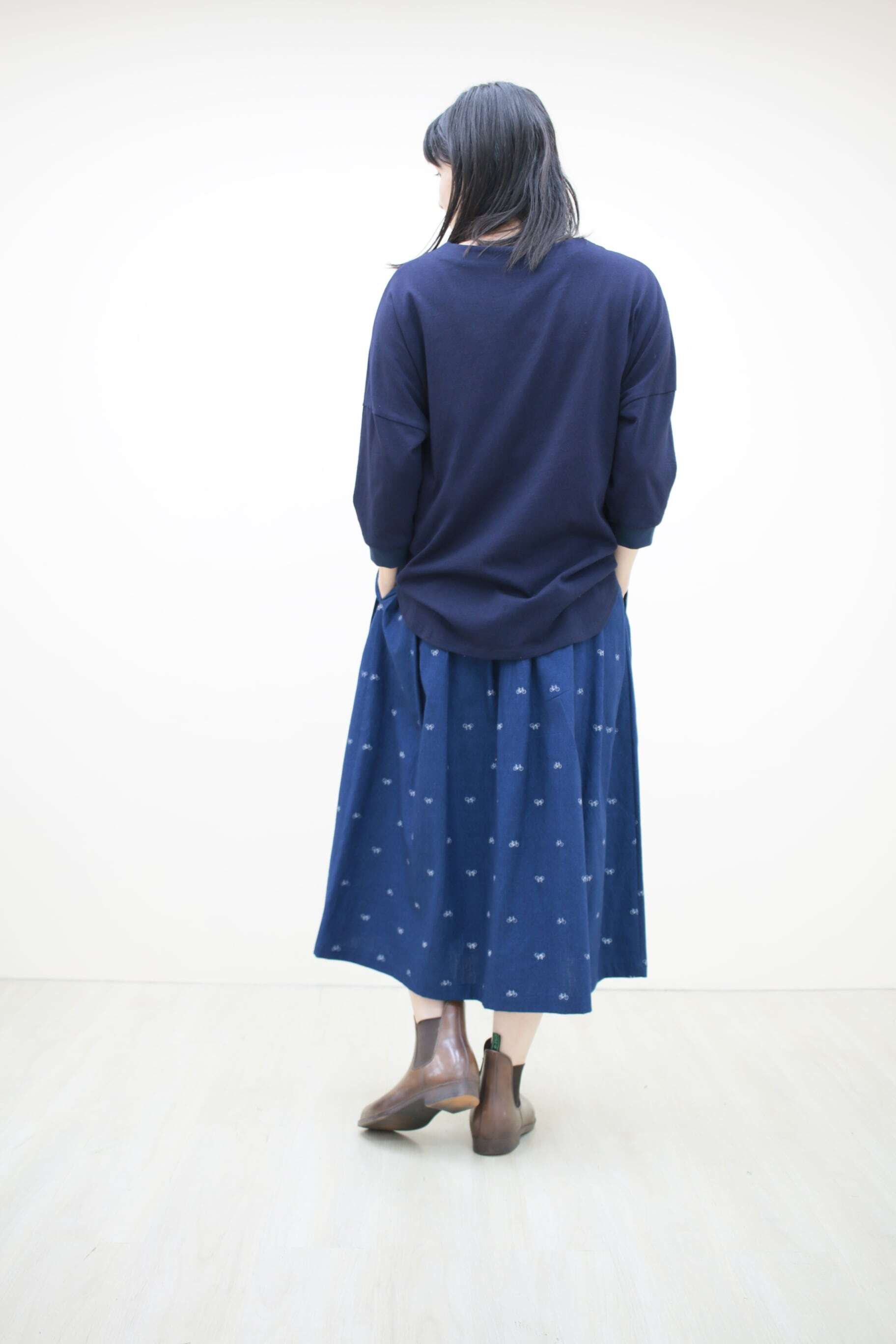 再入荷しました 7年ぶりの復活柄です 菜 1744 ヨーク切替スカート 藍染 自転車柄