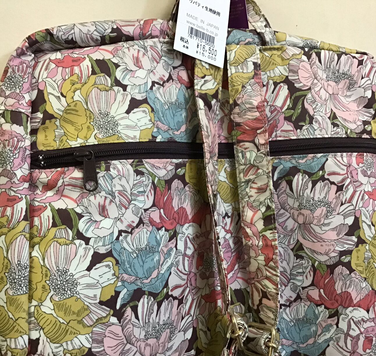 自由が丘ベルブランシェ リバティープリント ファスナーリュック ブラックバーン柄