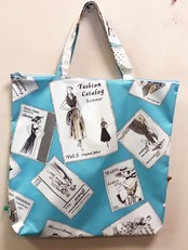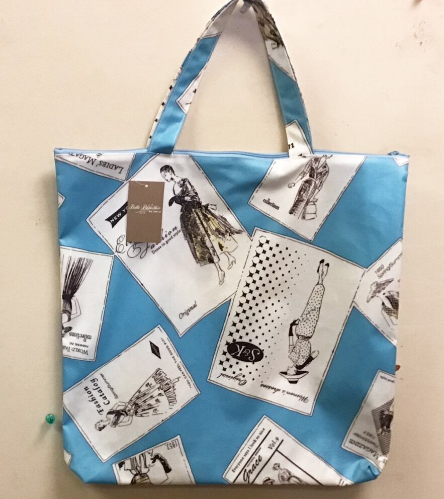 とっても鮮やかなスカイブルー、お馴染みベル・ブランシェの手提げ、ラミネート加工をしているので、雨の日も便利にお使いいただけます♪