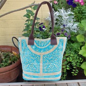 横浜ナナ H-1バッグ ドーム柄 ターコイズ/ベージュ