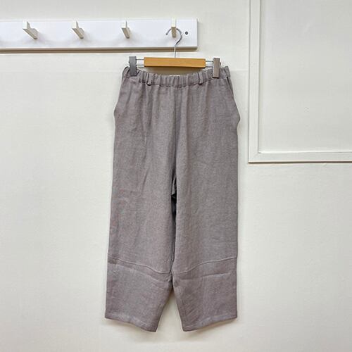コクーン型で、リネン素材でさっと着こなせるパンツです。デイリーにもお出かけにも重宝します。