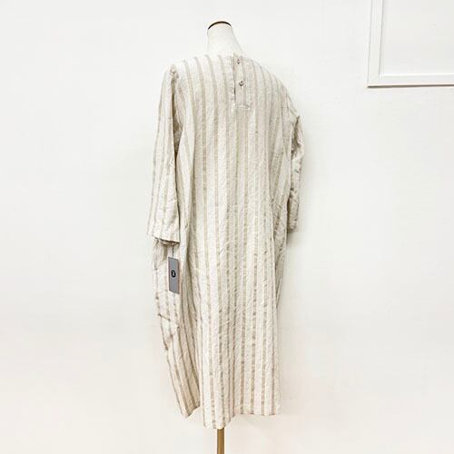 ヘリンボーンストライプのラインが縦にスッキリとした印象。綿麻素材のさらりとしたワンピースです。