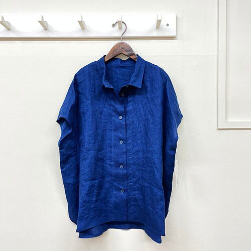 リネン素材でサラッとした肌触り。小さめの襟がキュートな印象のブラウスです。