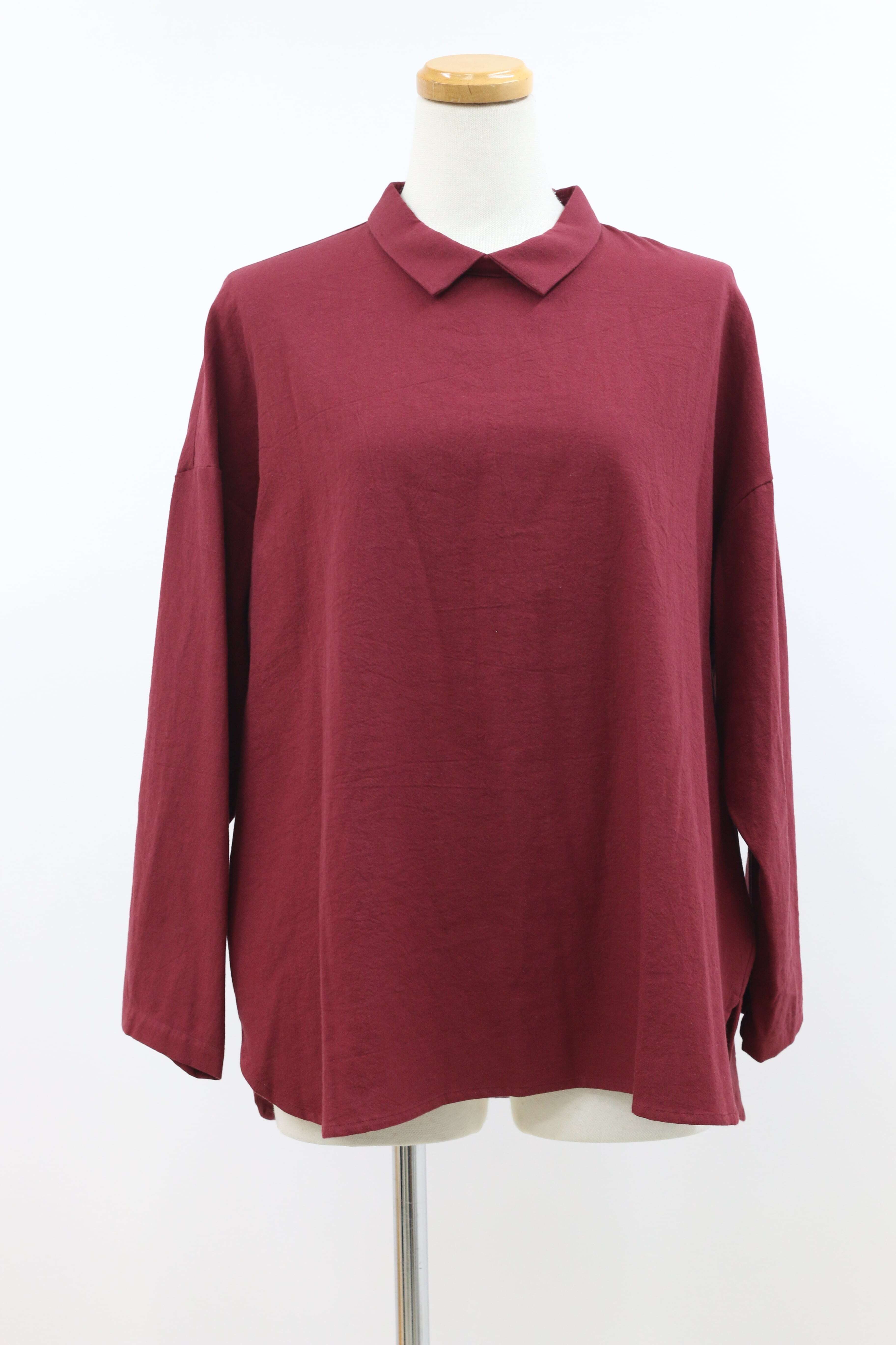 襟元はスモールカラーでスッキリと洗練された印象に、