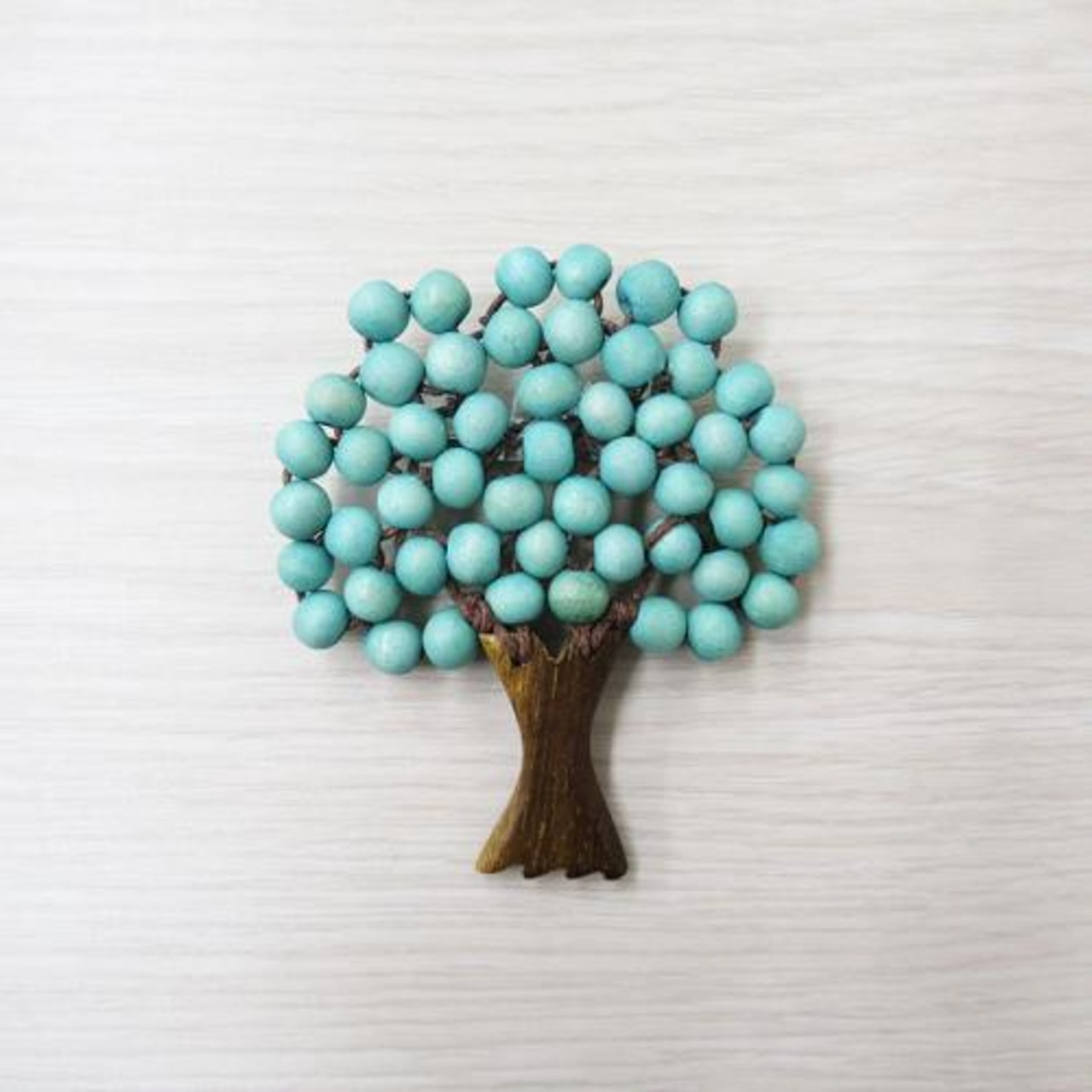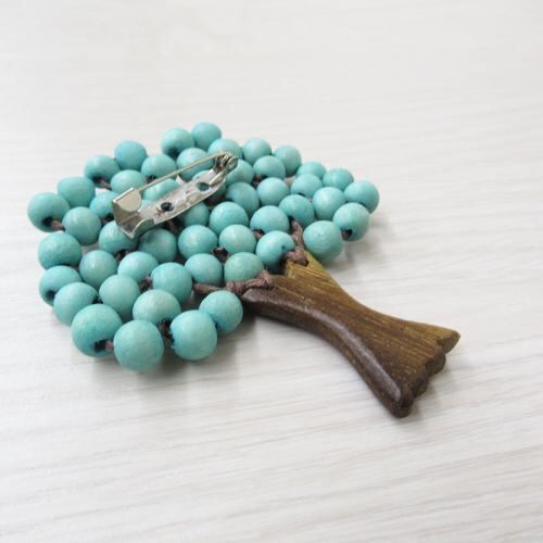 大きな木をモチーフにしたウッドビーズのブローチ。
