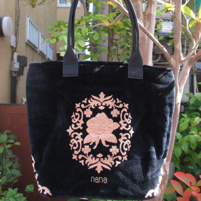 横浜ナナ ショルダー 定番の黒/ベージュ ワンポイントのバラ