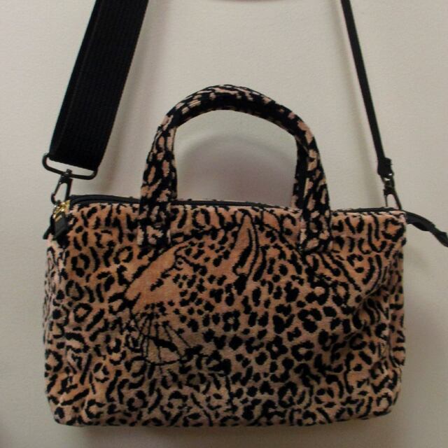 横浜ナナ 2ウェイボストン 黒/ベージュのジャガー柄