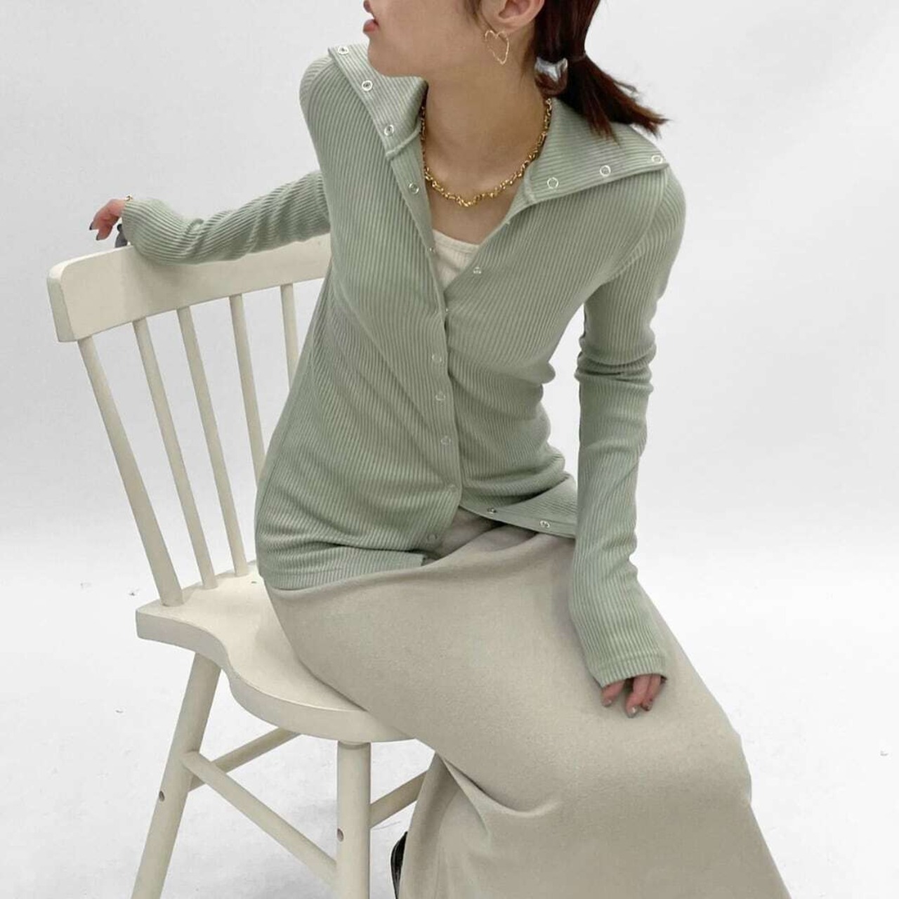 起⽑感のあるリブ素材で仕上げた前と後ろ2WAYで着られるカーディガンです。