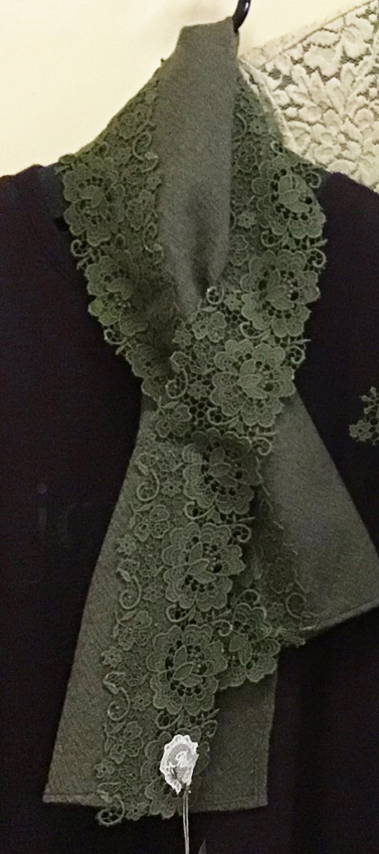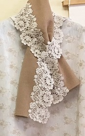 アレンジがしやすいように通しあながあるデザインです。 首元がさびしい時に巻いていただくと、お顔まわりも華やかになります。