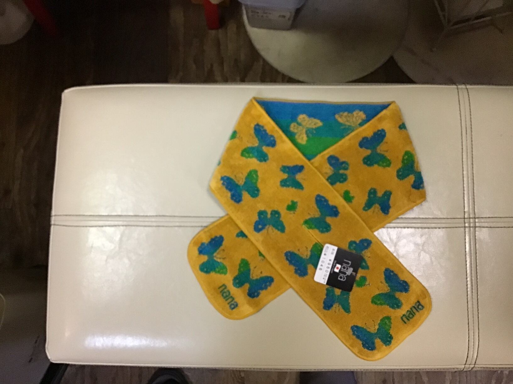横浜ナナのナローマフラーです。とっても扱いやすく片側の切り込みに挟む仕様になりました。